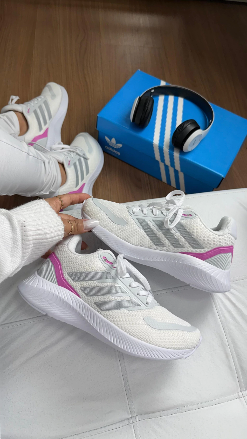 ✨ Cabedal em mesh respirável para manter seus pés fresquinhos durante todo o dia. 🎀 Detalhes delicados em rosa na parte traseira que adicionam um toque feminino e exclusivo. 💨 Entressola leve com amortecimento macio, garantindo passos confortáveis e proteção para suas articulações. 📦 Acompanha a caixa original Adidas, perfeita para presentear ou colecionar. 🌸 Desenvolvido para quem valoriza conforto com muito estilo em cada movimento.