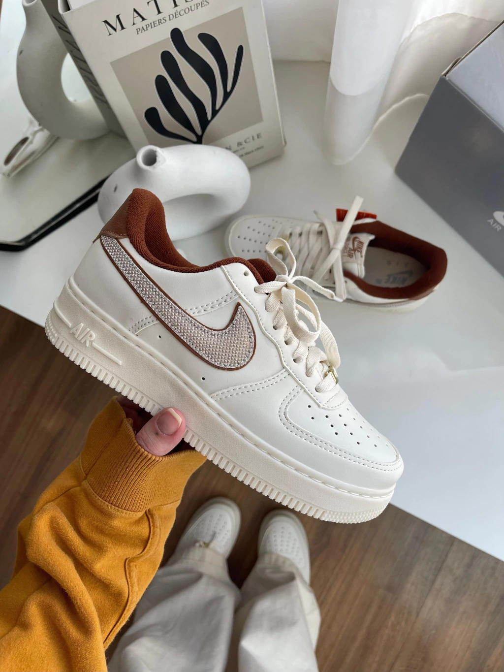Tênis Air Force 1 – Branco com Detalhes Caramelo O clássico que conquistou gerações voltou, agora com um toque de modernidade e exclusividade! Este tênis é a escolha perfeita para quem busca unir estilo e conforto em um só produto.