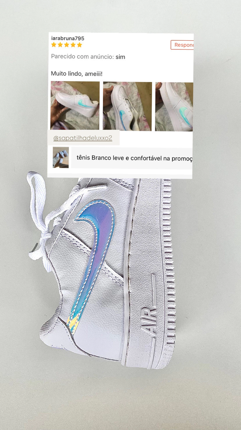 Do casual ao estiloso! O Tênis Air Force Holografico é aposta certa para acompanhar as suas produções em qualquer ocasião. Confeccionado em material resistente, tem solado emborrachado, palmilha macia e fechamento por cadarço ajustável. Exibe assinatura da coleção na lateral. Dica: aposte em combinações com looks casuais - com saia, short, vestido, calça sarja ou calça jeans feminina. Você sempre na moda!