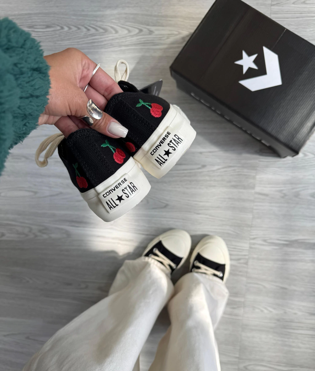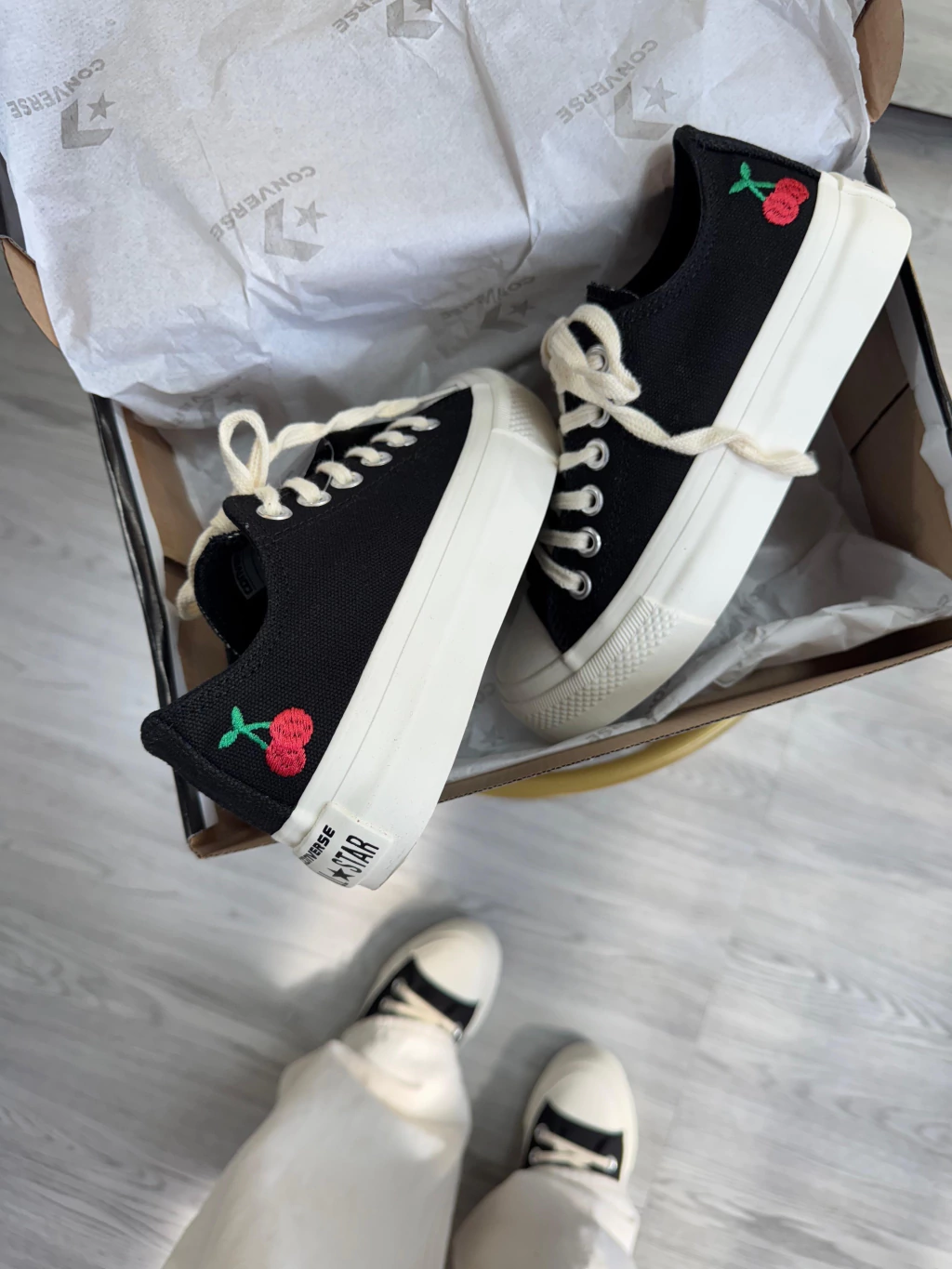Se você busca um tênis que una autenticidade, estilo e um charme único, o Tênis Converse Plataforma com detalhe de cerejinha bordada é a escolha perfeita para você. Seu design icônico, combinado com um bordado exclusivo de cerejinha, traz aquele toque delicado e divertido que vai transformar seus looks do dia a dia.