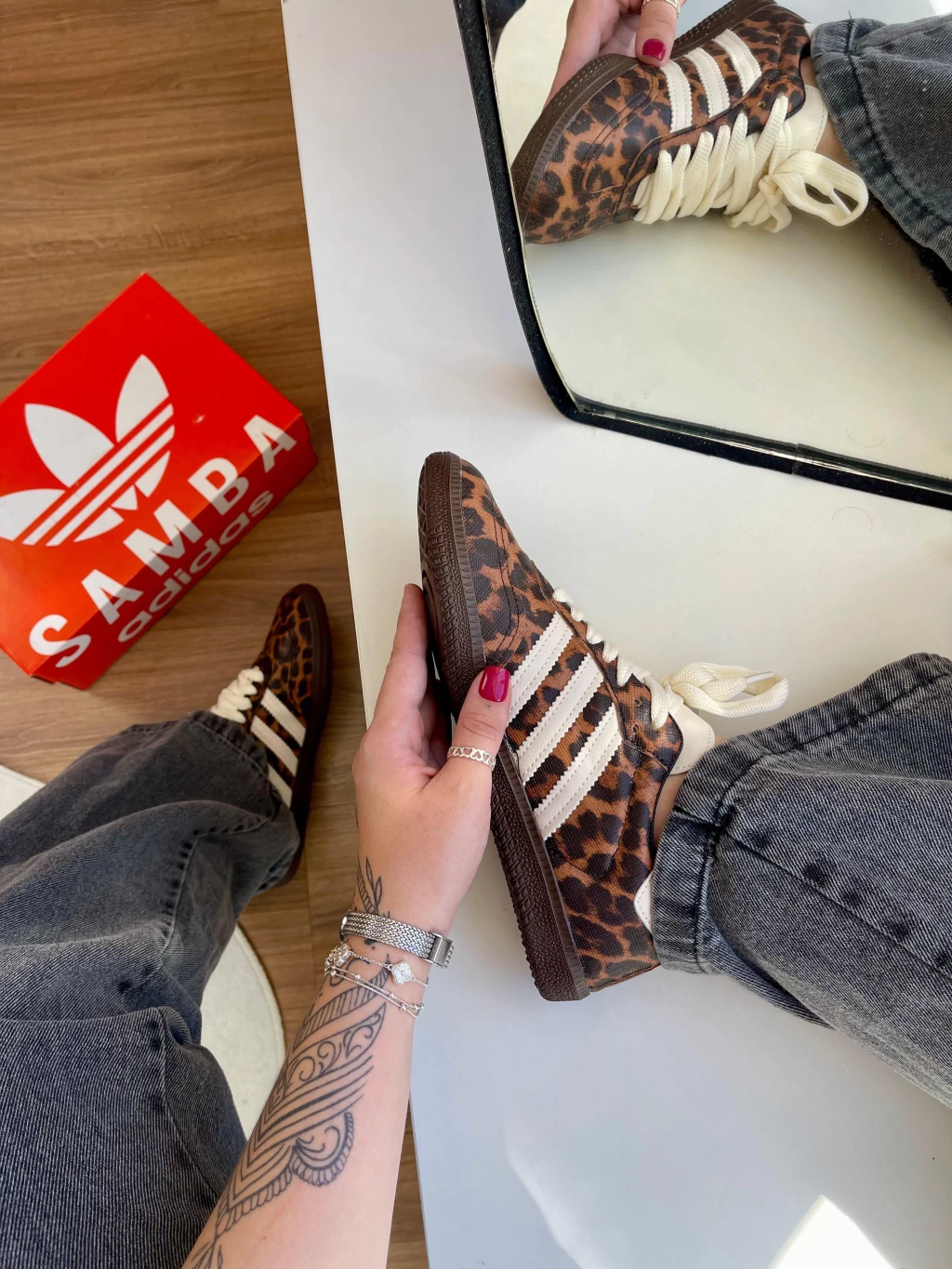 Experimente o luxo e a autenticidade do Tênis Samba Couro Onça — um clássico repaginado para você brilhar em qualquer ocasião! ✨