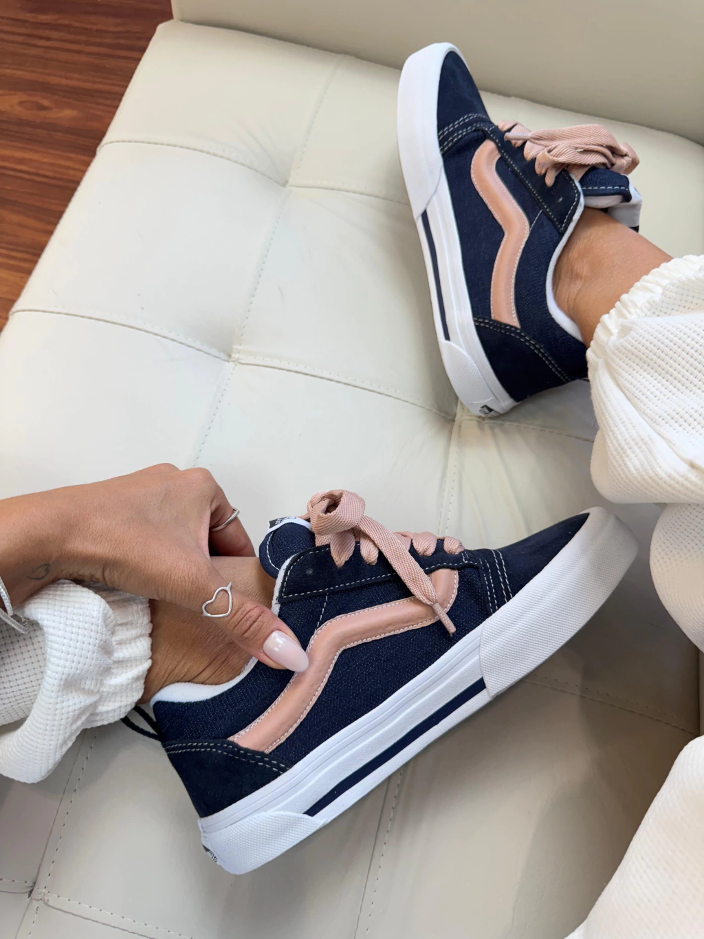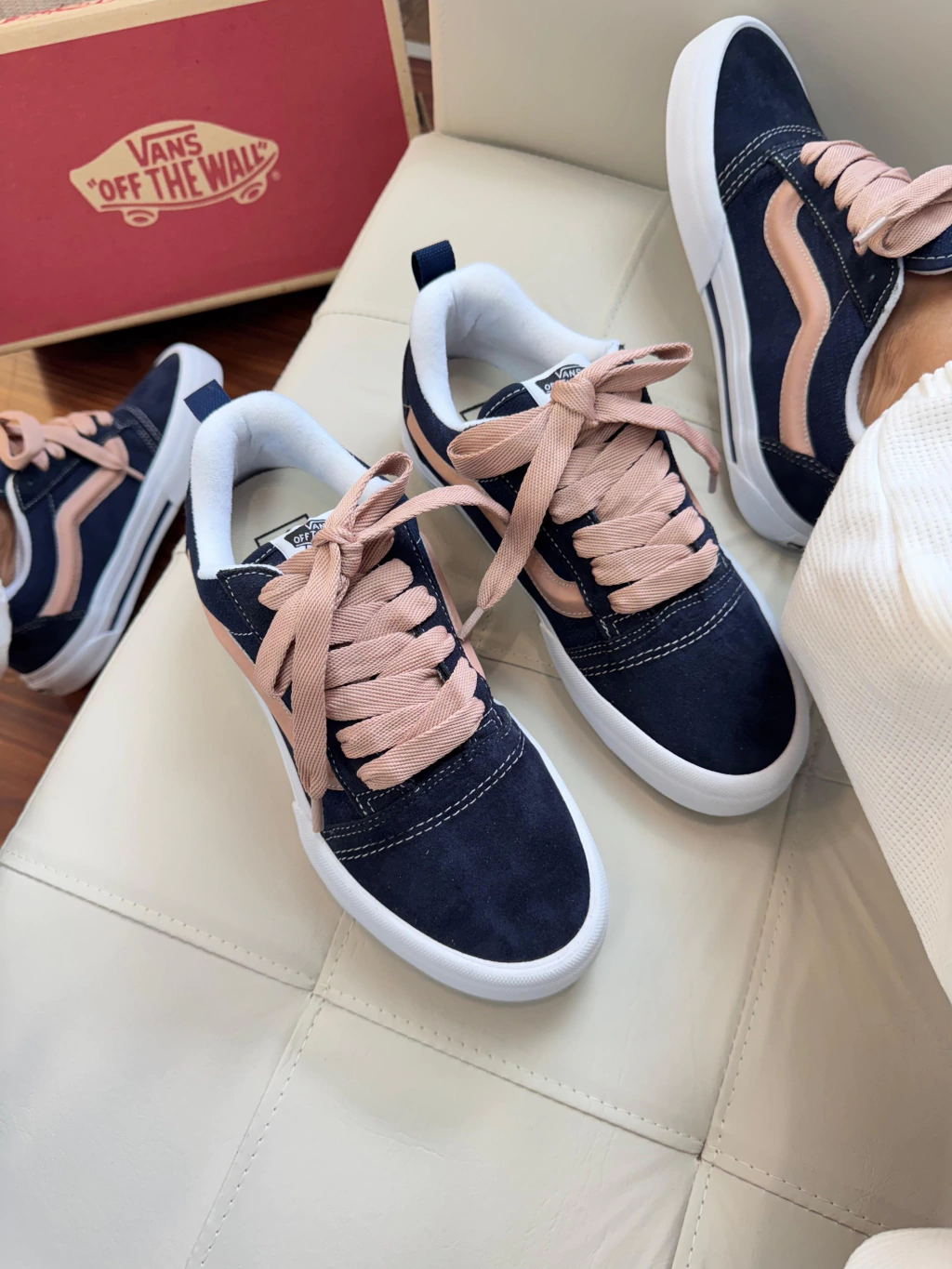 Um estilo “volumoso” típico dos anos 90 que foi inspirado no tênis de cano baixo da Vans. O Knu Skool é a interpretação contemporânea de um estilo clássico dos anos 90, caracterizado por sua lingueta volumosa e Sidestripe Vans.